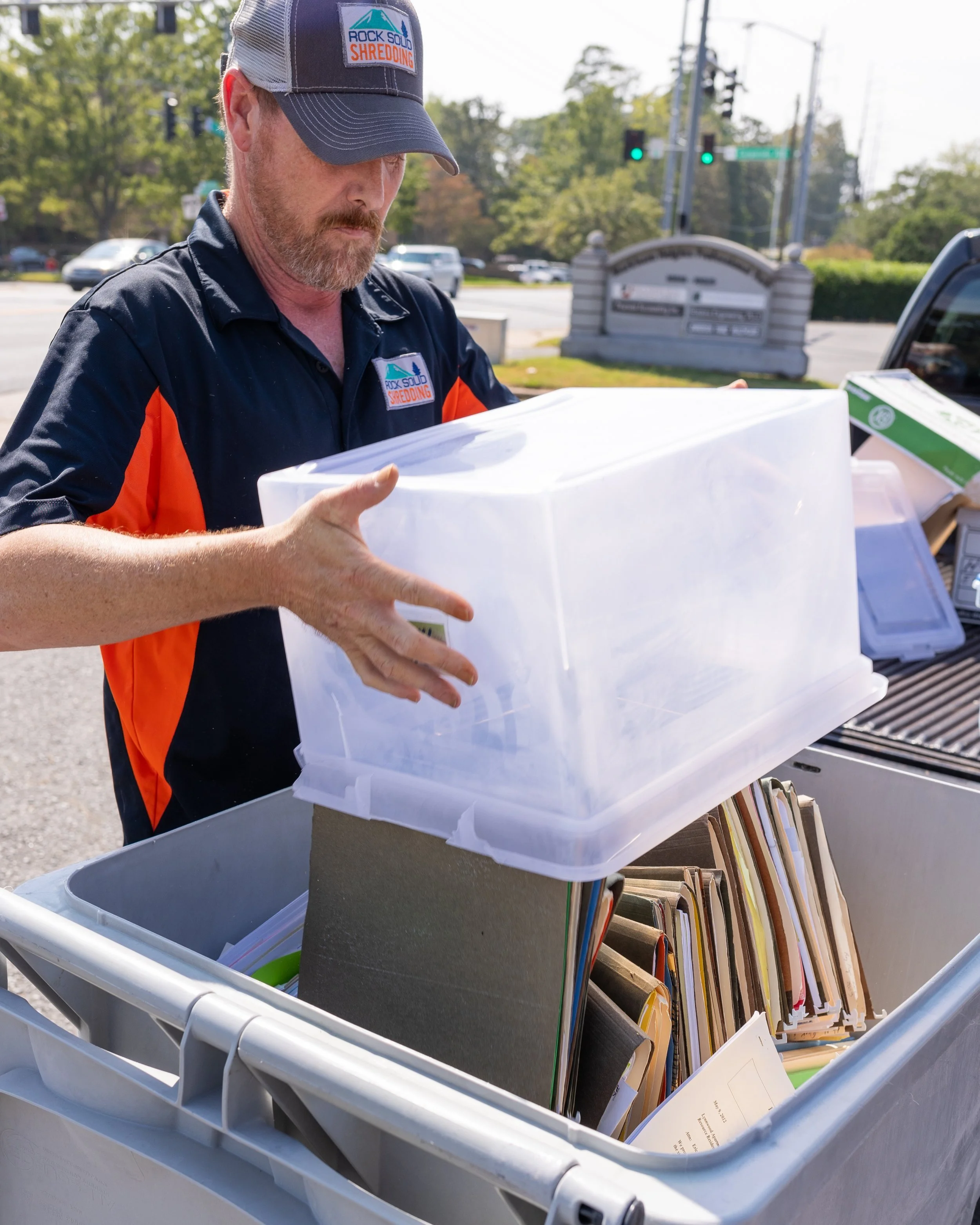 If you have less than 15 boxes (or 450 pounds) worth of documents—and if you do not need to see them destroyed on-site—then our walk-in shred service is the perfect solution for you. We also accept small amounts of hard drives.